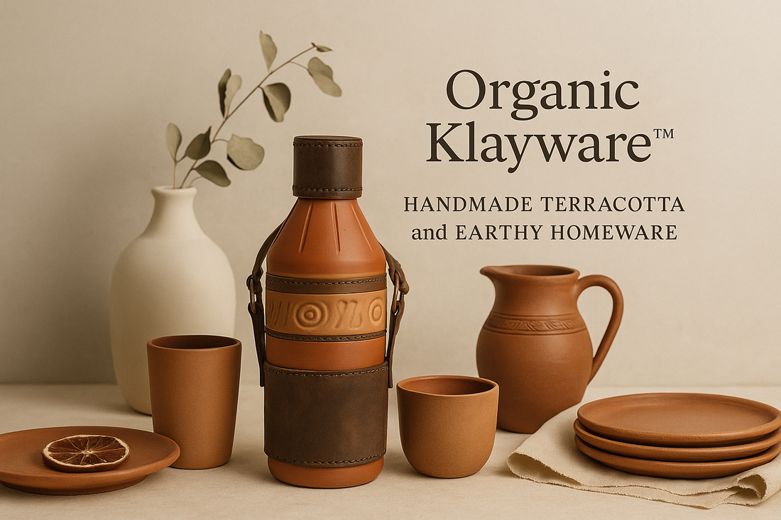 Handcrafted Natural Terracotta Clay Water Bottle (600ml / 20.2 fl oz) by Organic Klayware | Rustic Gift | Natural Cooling | Eco-Friendly | Reusable | Sustainable | Artisanal Craftsmanship | Natural Filtration